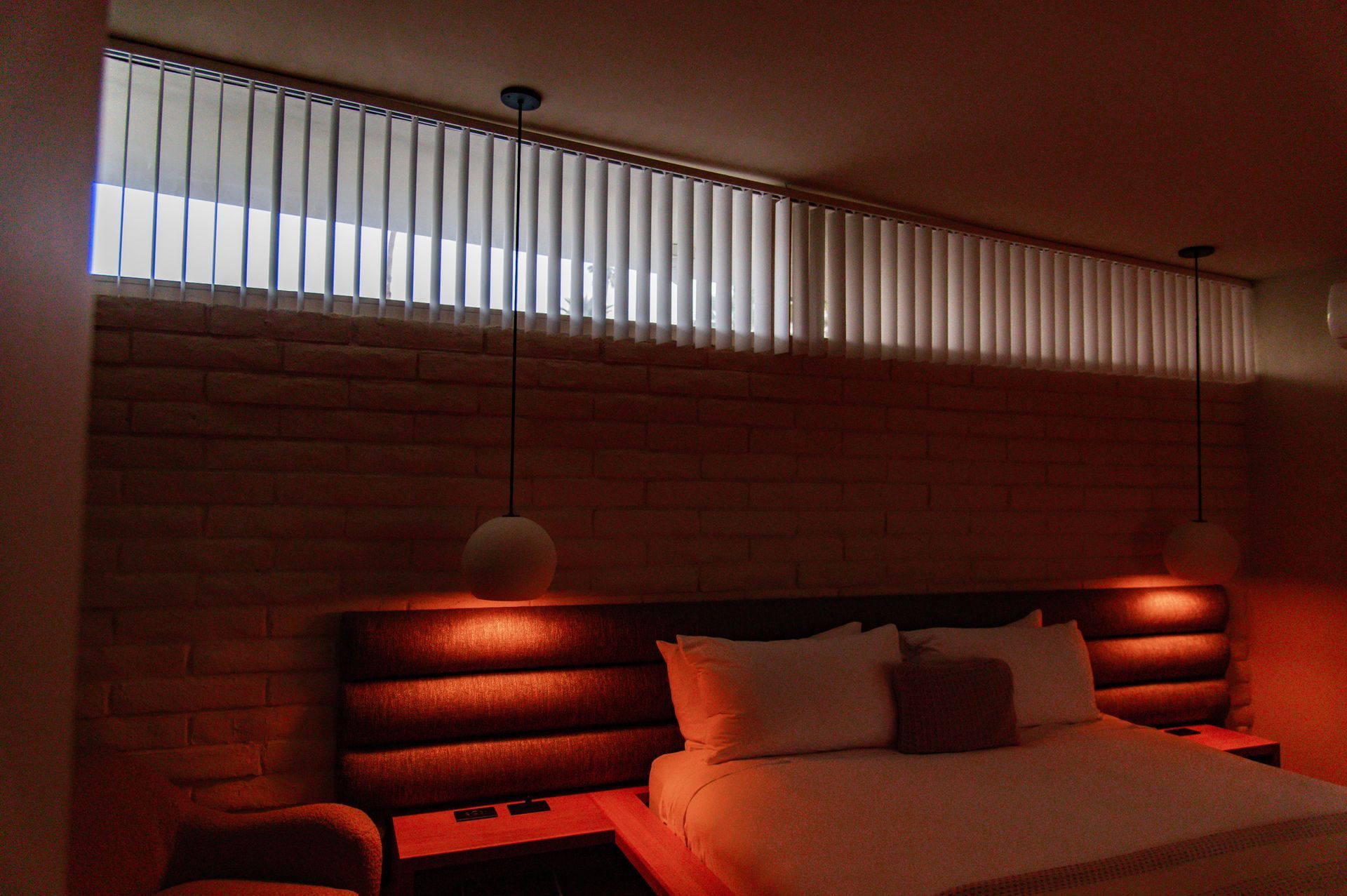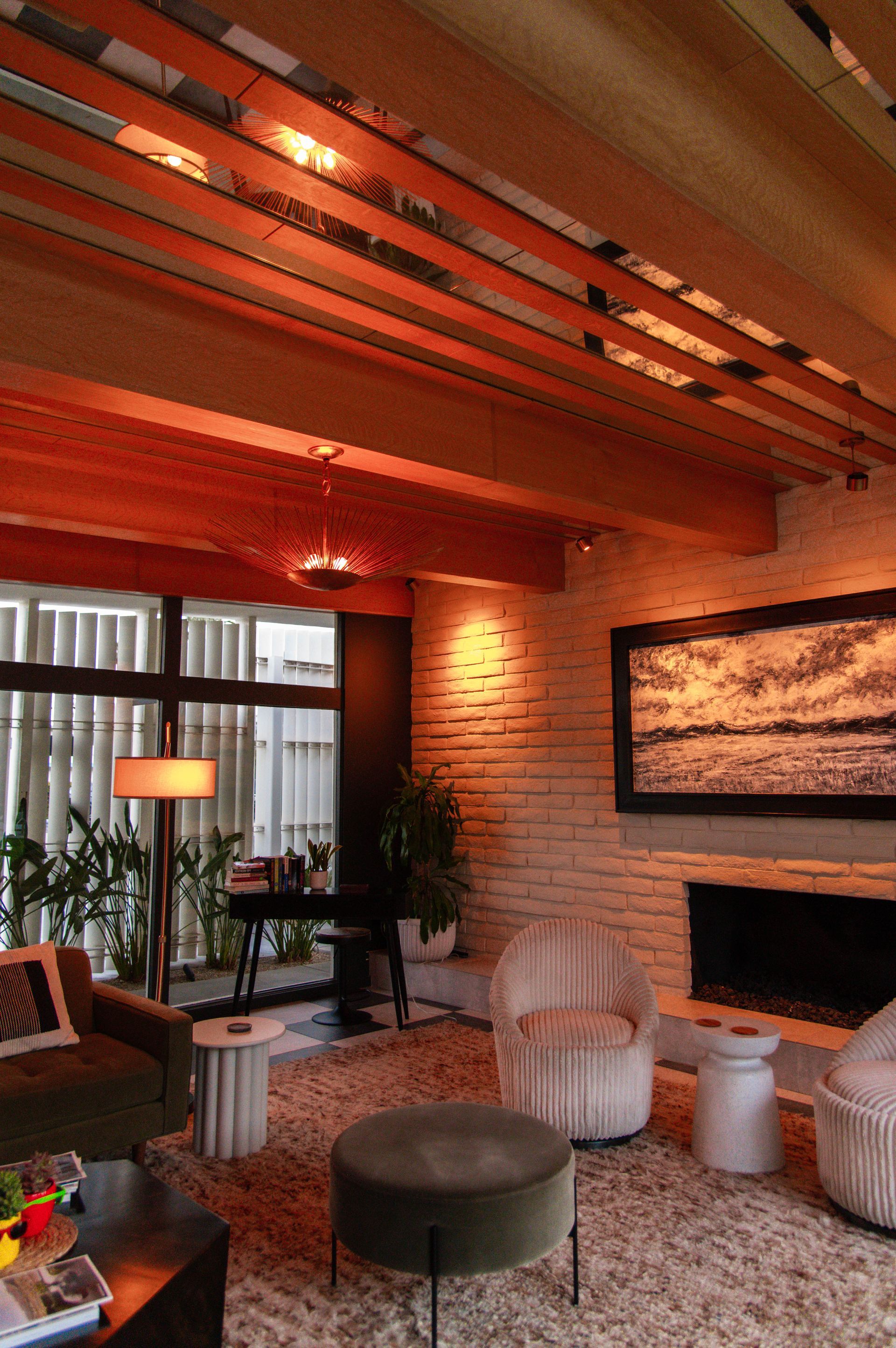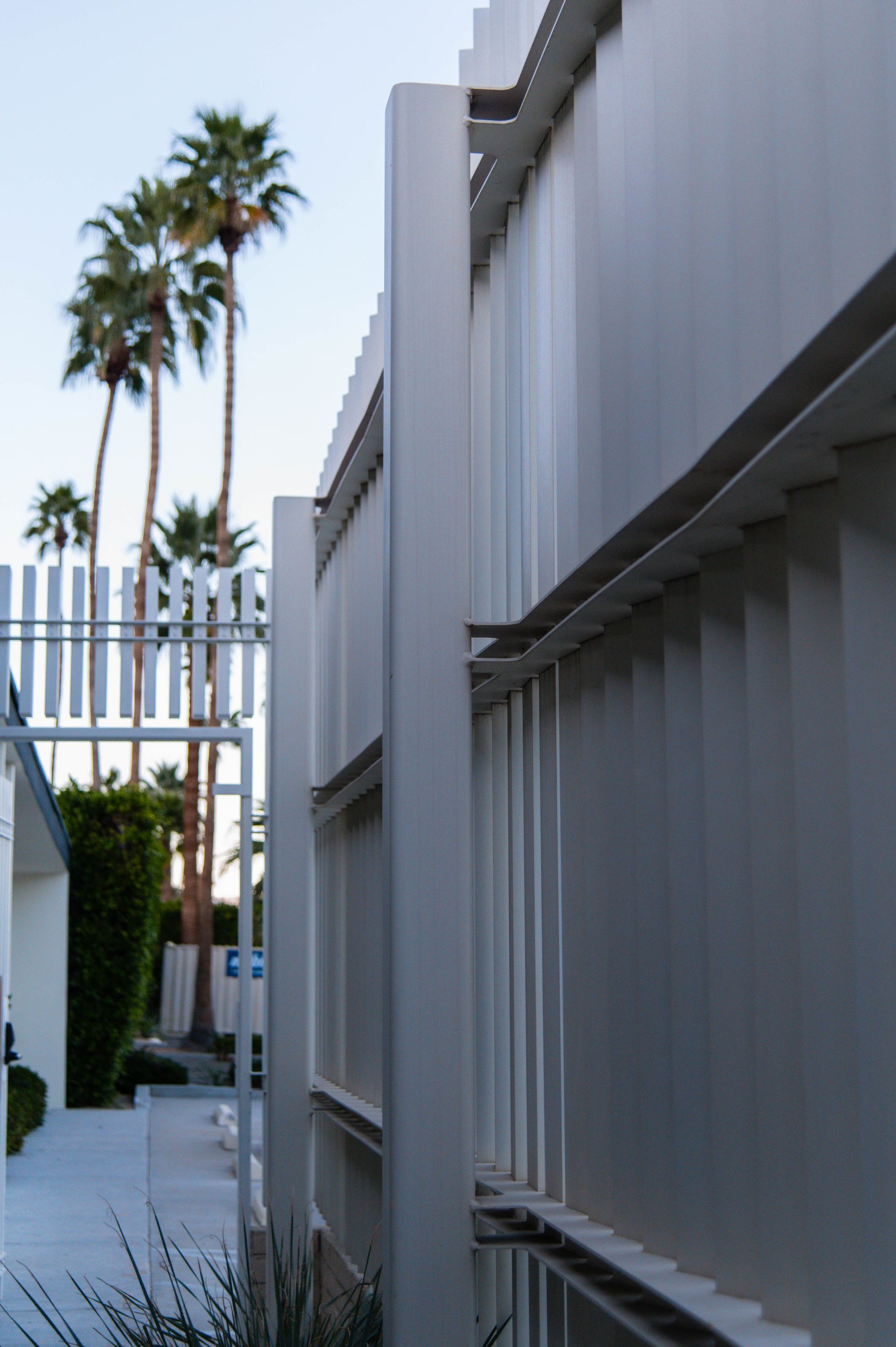 A brise soleil was the focal point of the design for this Late-Modern Hotel remodel that has informed design elements across the site of the project. This feature not only adds privacy for hotel guests, it adds visual interest while allowing air and light to pass through. This parametric design shifts based on the viewers' perspective giving the façade a sense of movement.