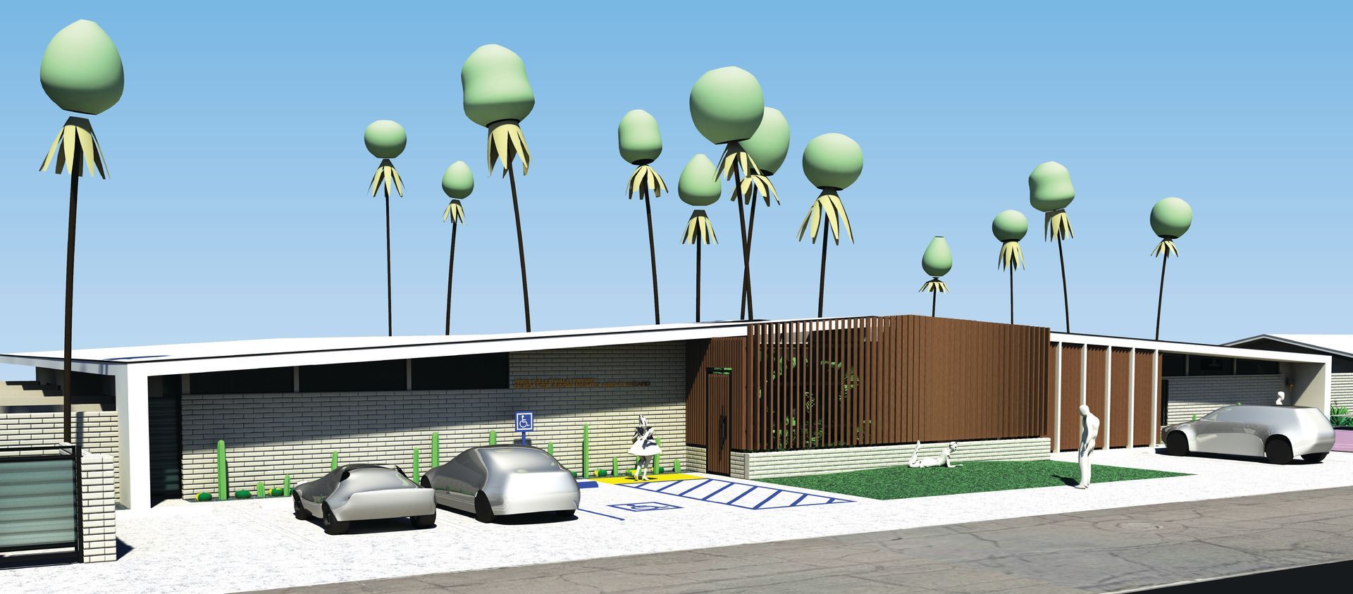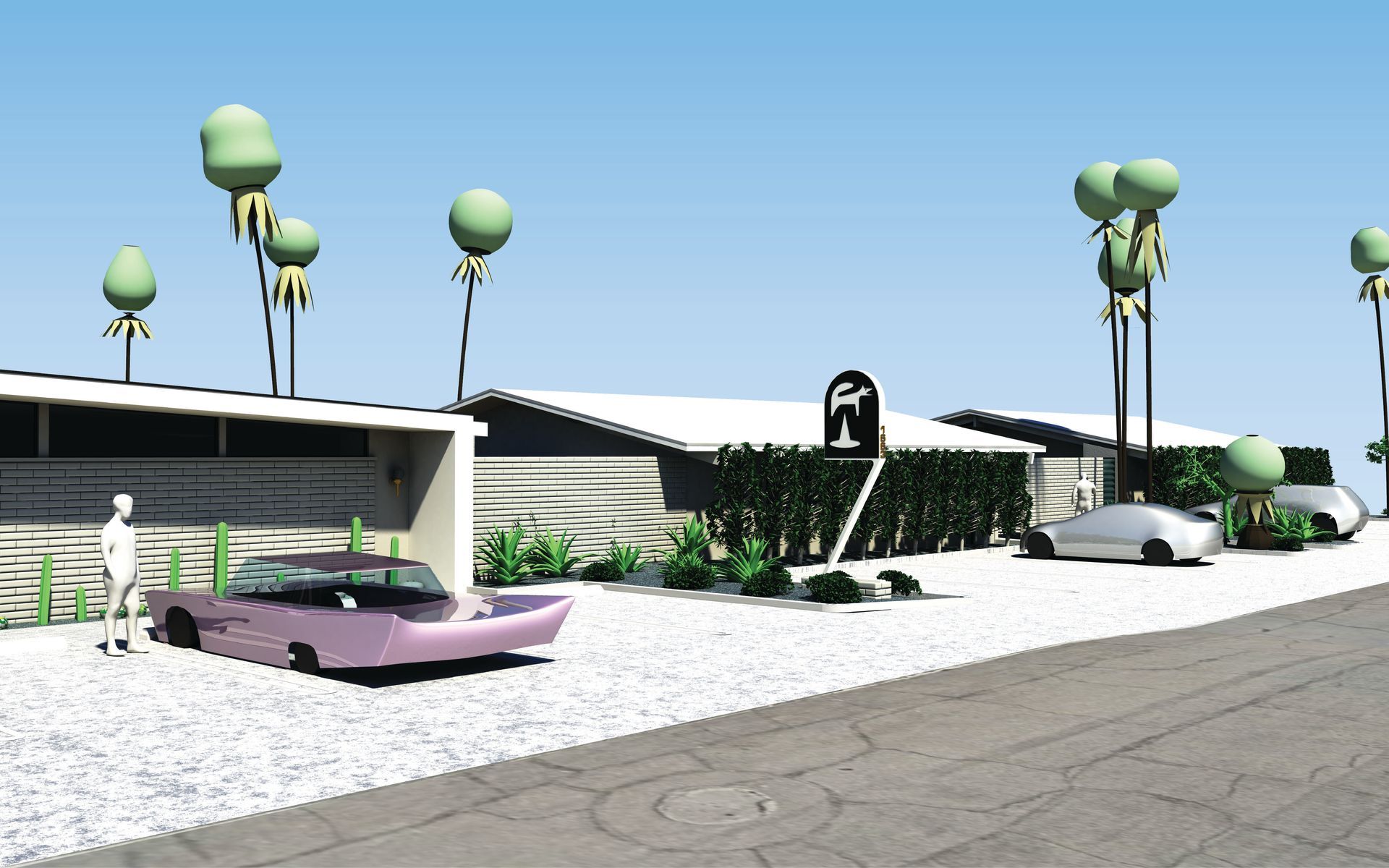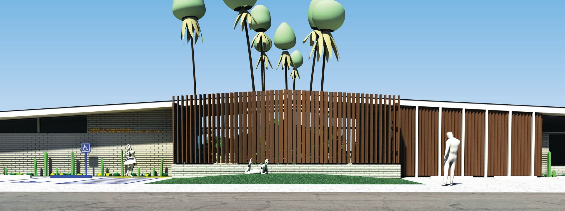 A brise soleil was the focal point of the design for this Late-Modern Hotel remodel that has informed design elements across the site of the project. This feature not only adds privacy for hotel guests, it adds visual interest while allowing air and light to pass through. This parametric design shifts based on the viewers' perspective giving the façade a sense of movement.