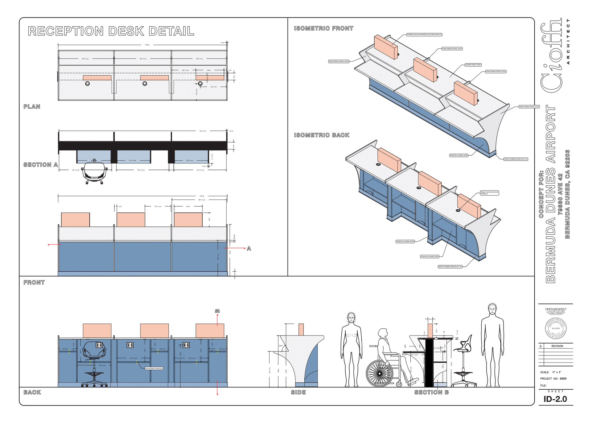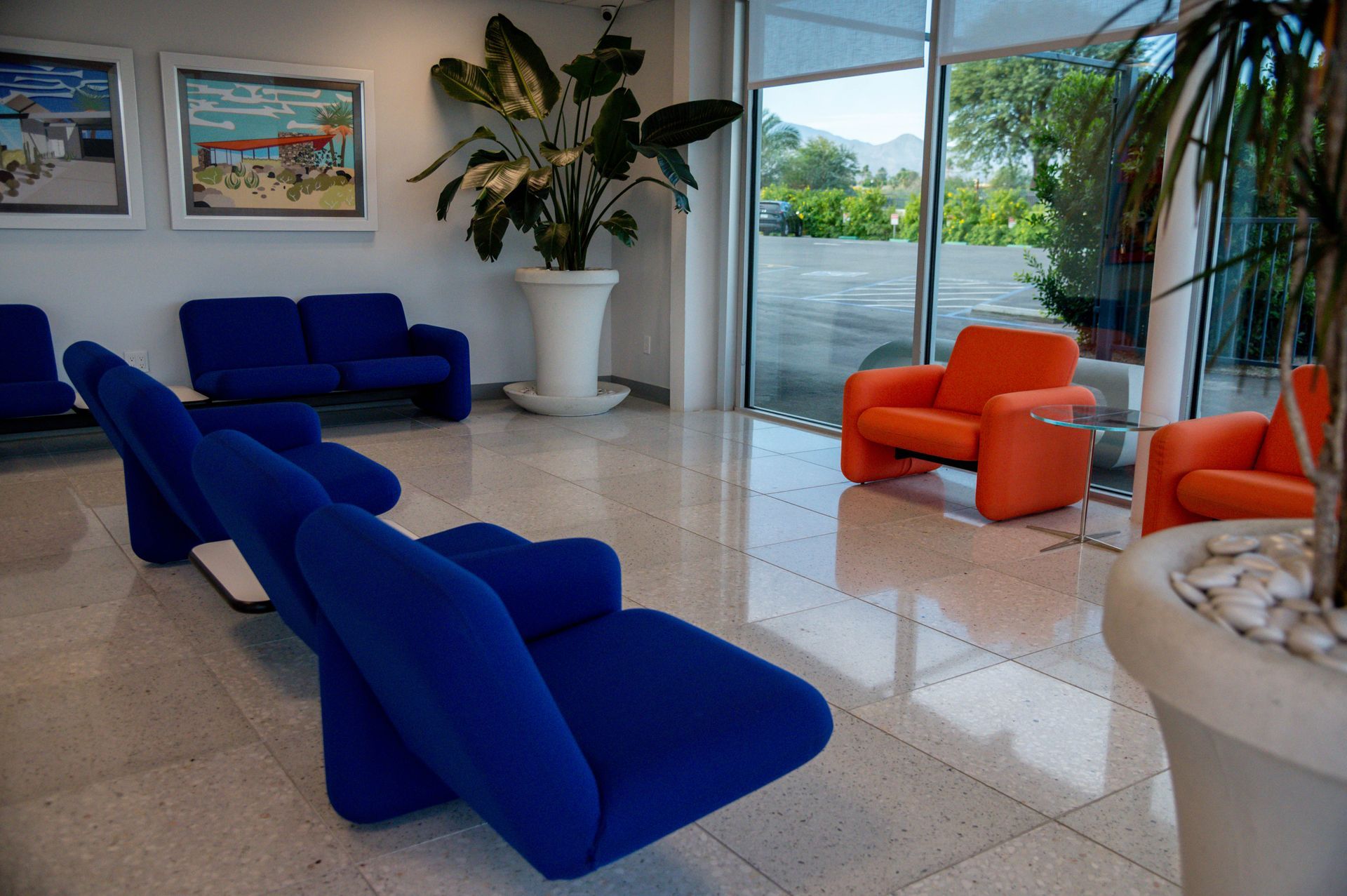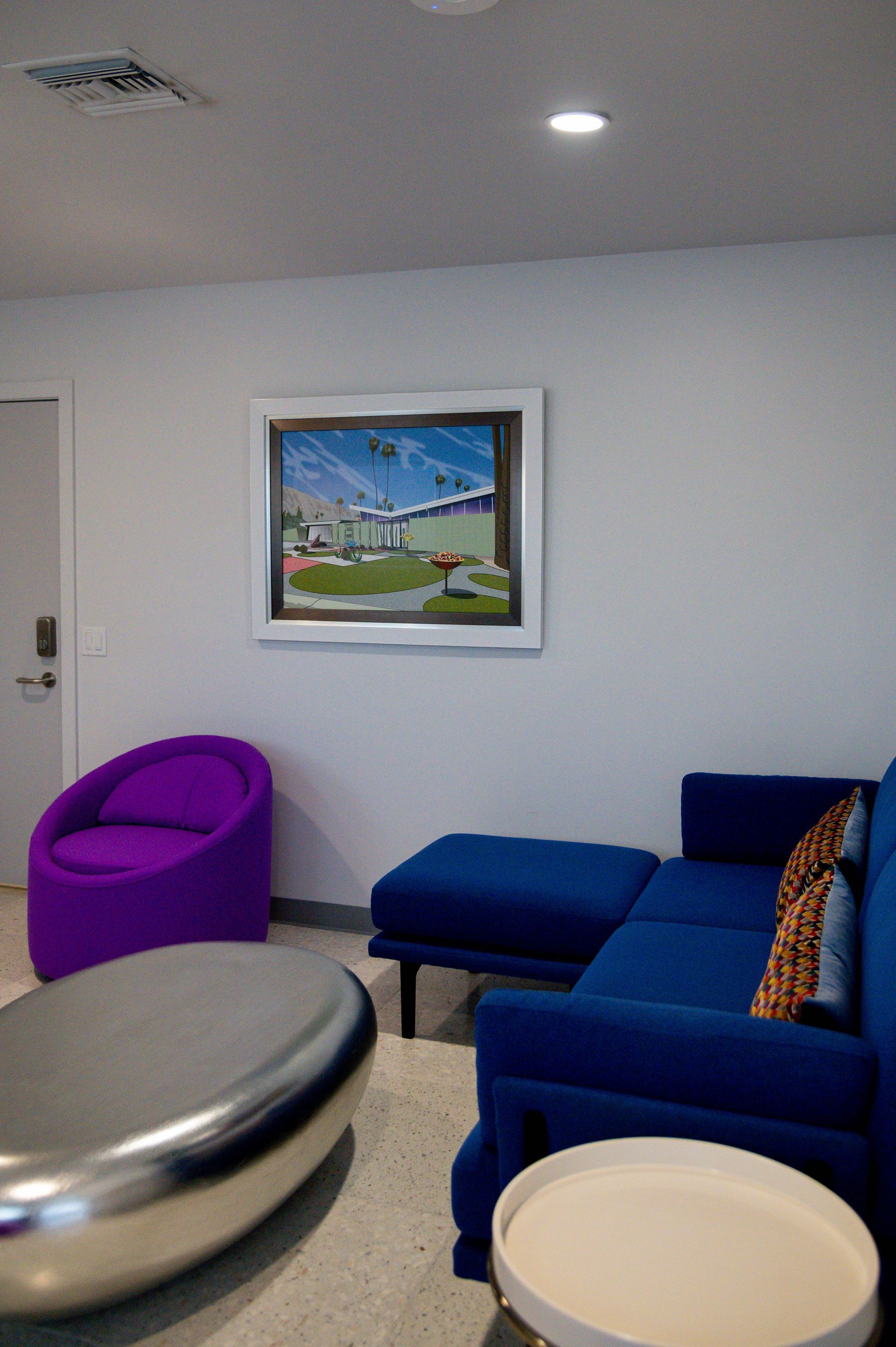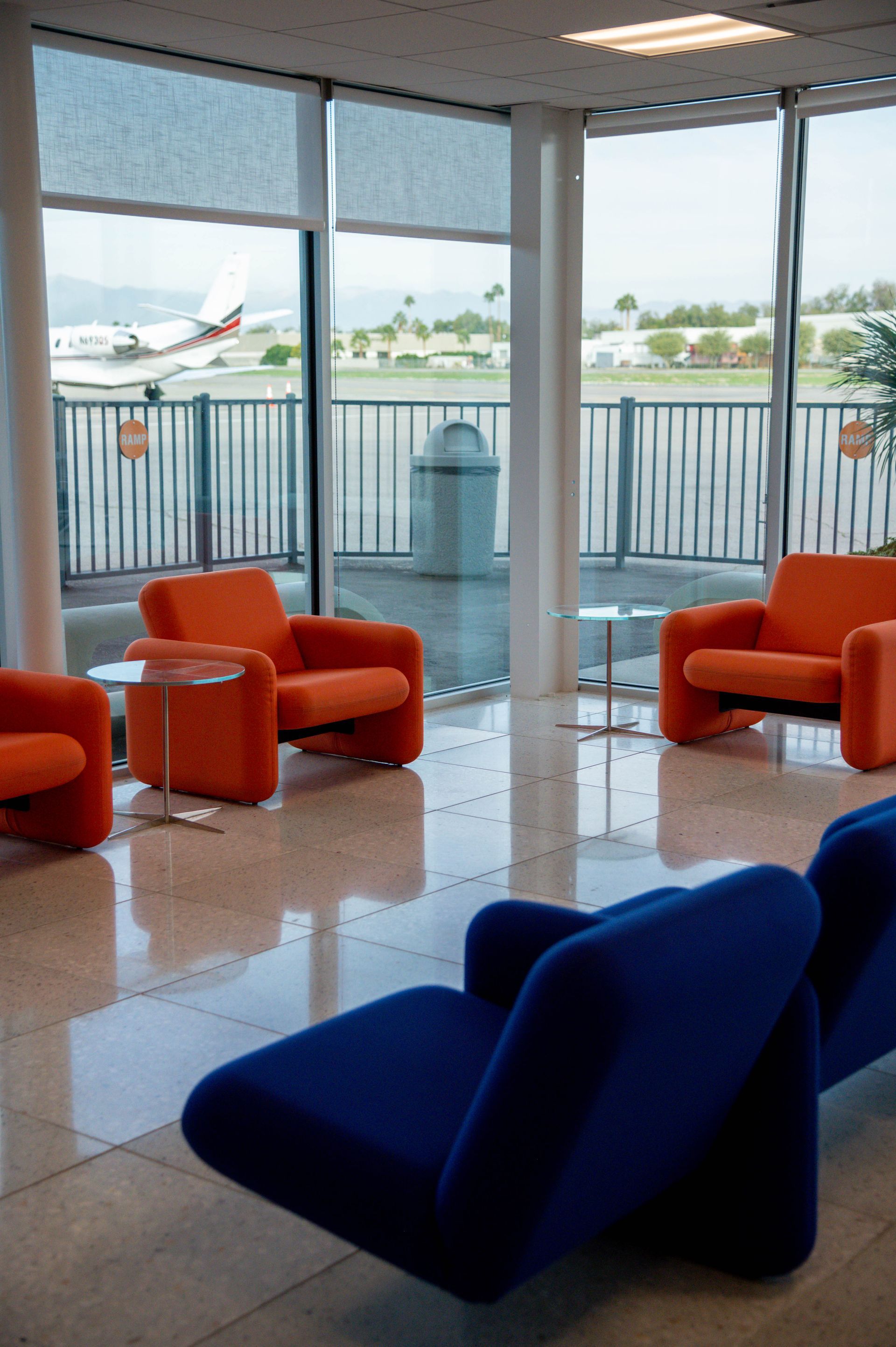 The Bermuda Dunes Airport renovation is utilizing a 60’s Psyche-Mod Design getting inspired by watching episodes of The Jetsons & channeling Alexander Girard for Braniff, Emilio Pucci & Beth Levine. The Hospitality Lounge features custom millwork and glass shelves by us and furniture by Floyd Detroit, Herman Miller and Wausau.