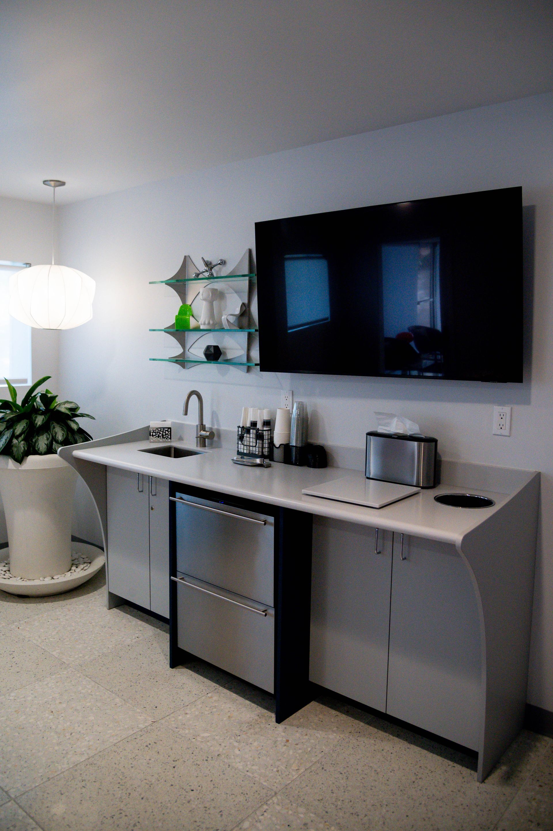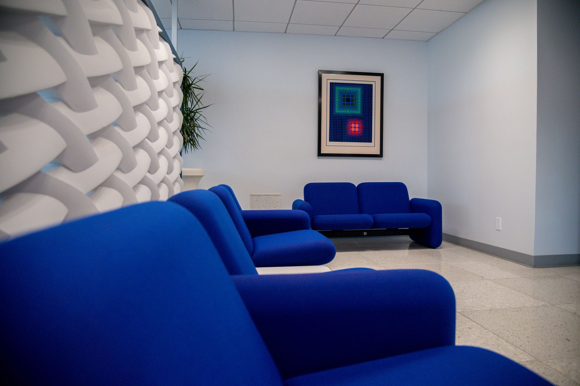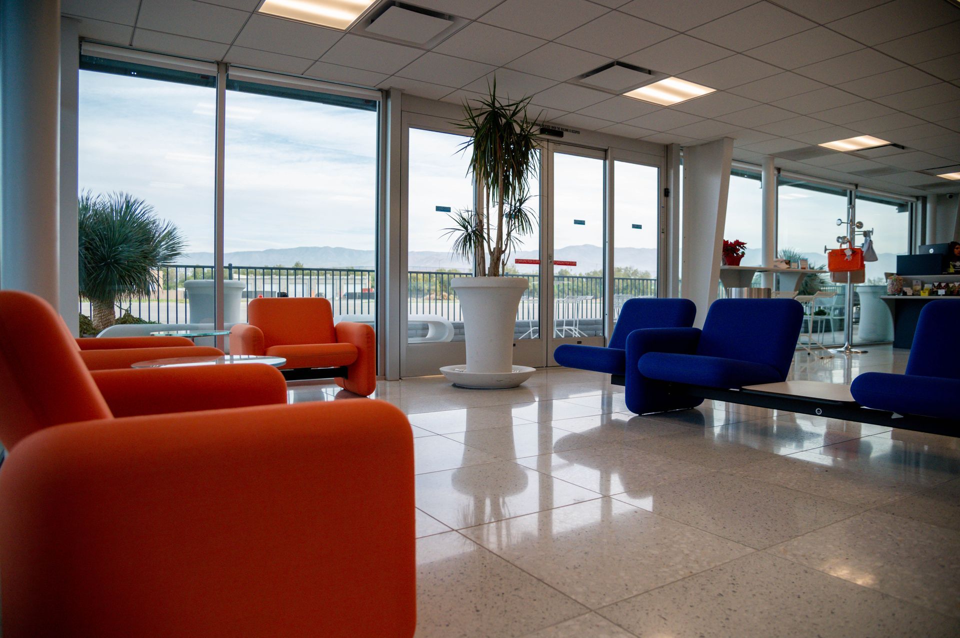 The Bermuda Dunes Airport renovation is utilizing a 60’s Psyche-Mod Design getting inspired by watching episodes of The Jetsons & channeling Alexander Girard for Braniff, Emilio Pucci & Beth Levine. The Hospitality Lounge features custom millwork and glass shelves by us and furniture by Floyd Detroit, Herman Miller and Wausau.
