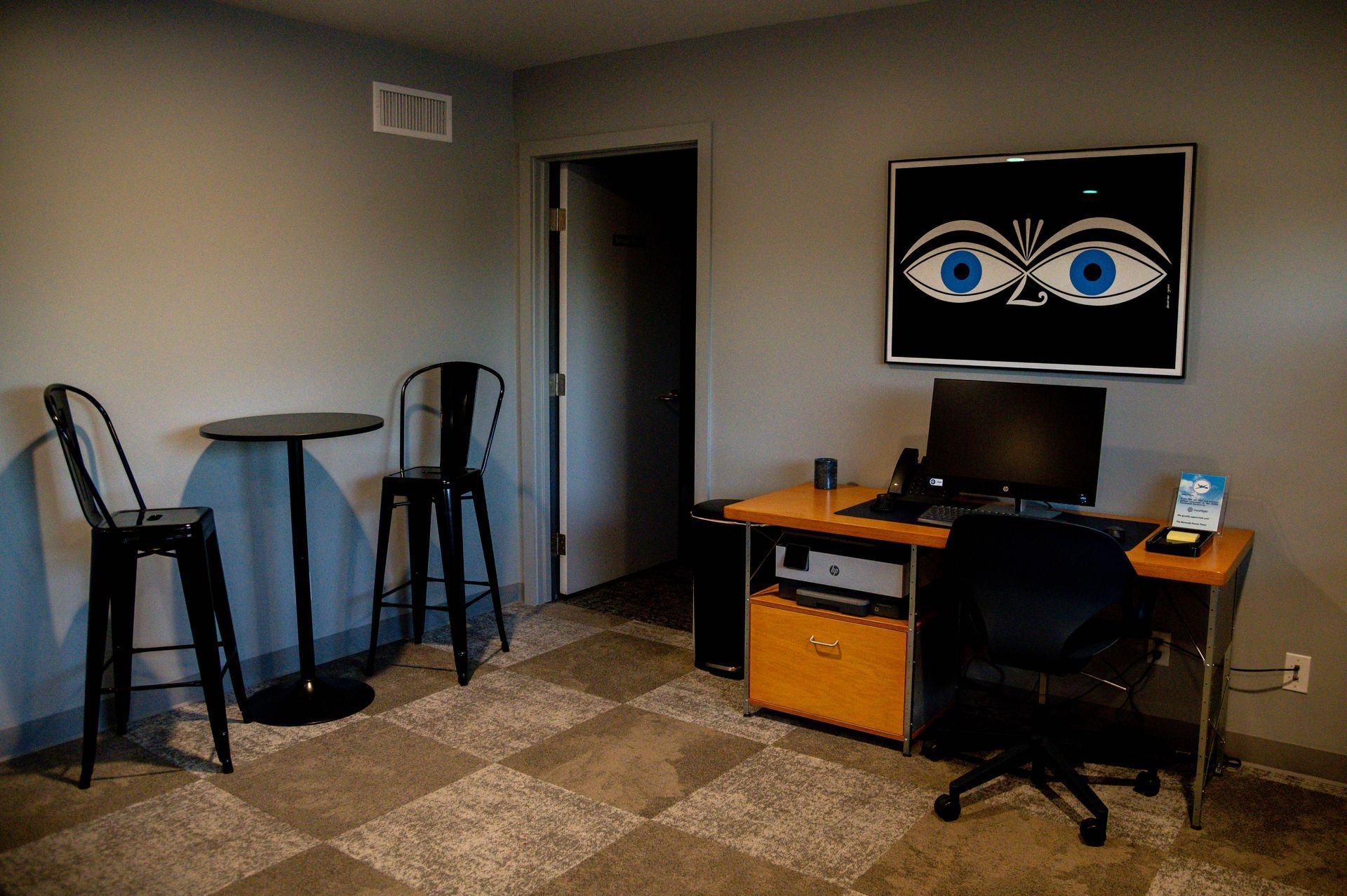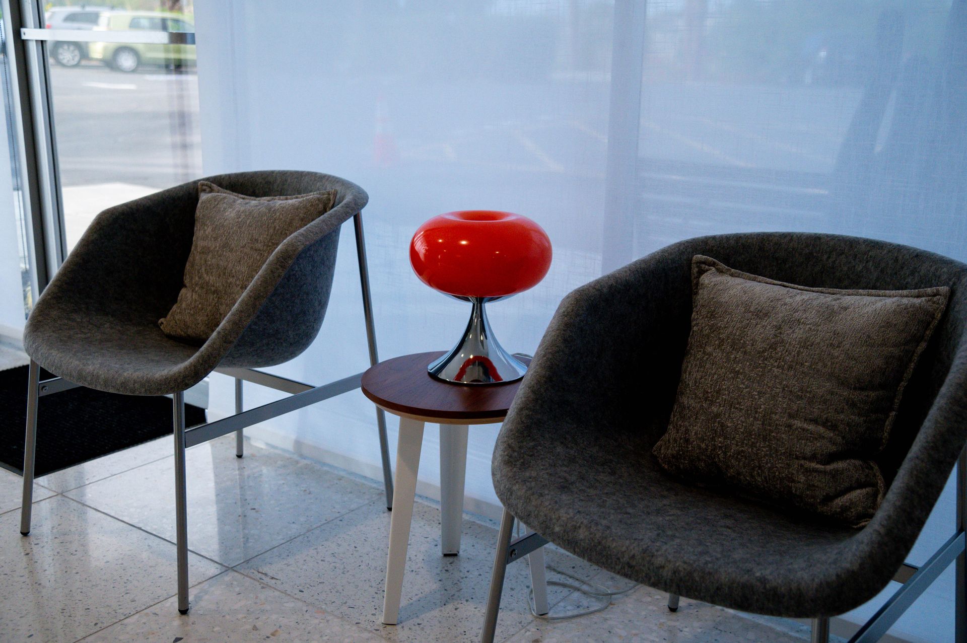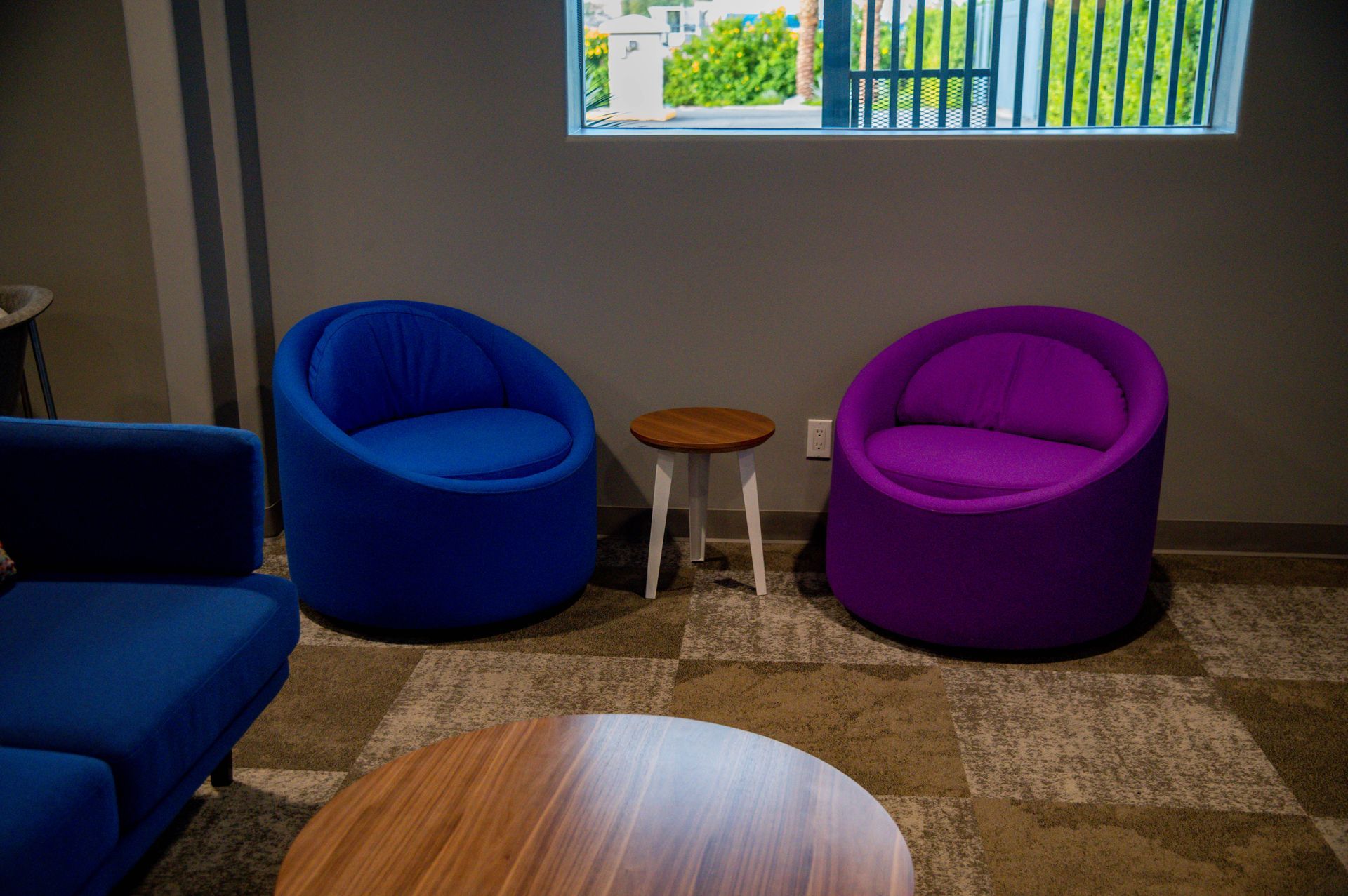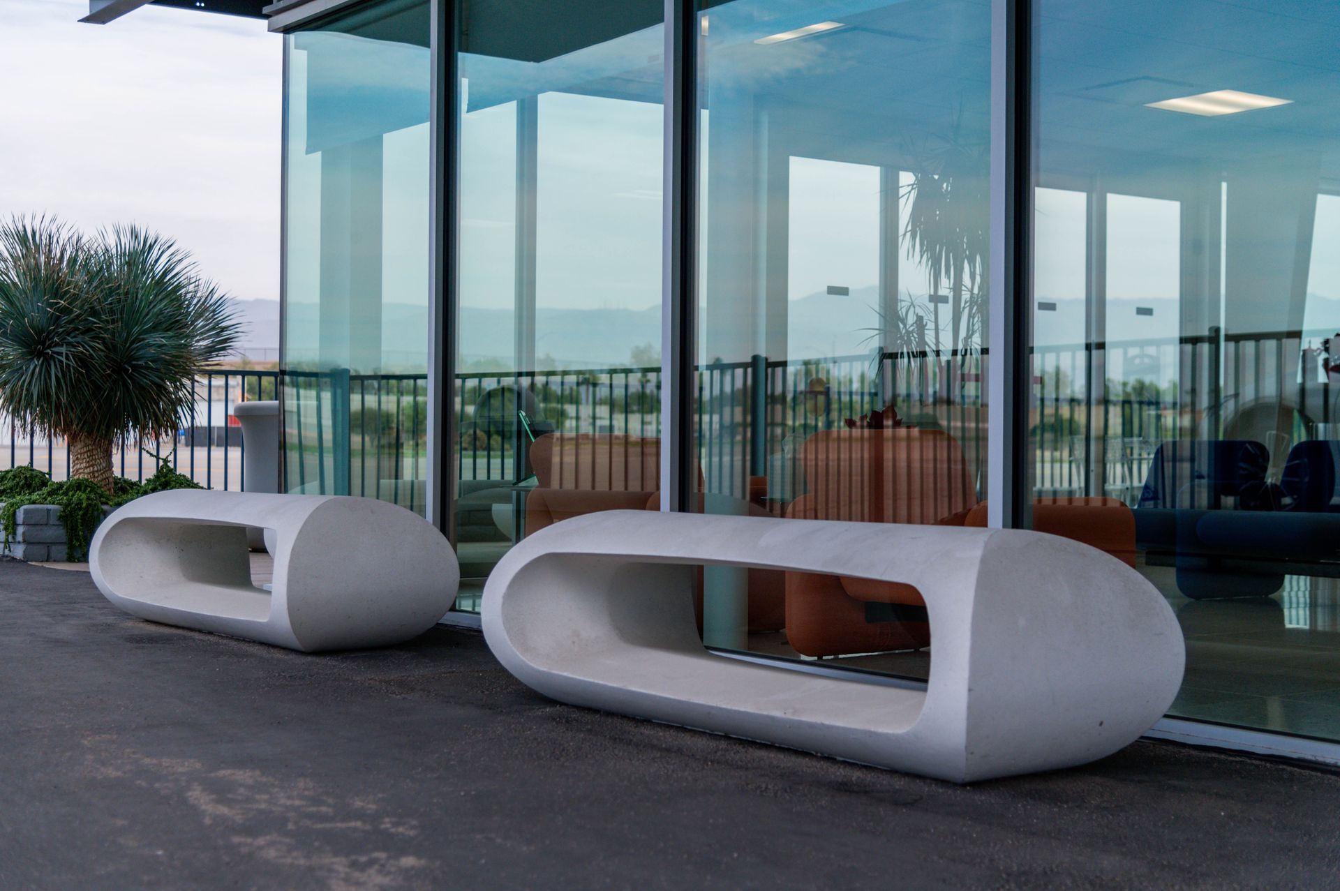 The Bermuda Dunes Airport renovation is utilizing a 60’s Psyche-Mod Design getting inspired by watching episodes of The Jetsons & channeling Alexander Girard for Braniff, Emilio Pucci & Beth Levine. The Hospitality Lounge features custom millwork and glass shelves by us and furniture by Floyd Detroit, Herman Miller and Wausau.